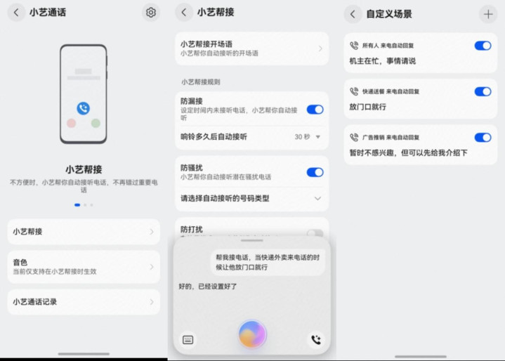 开学后军训操练、图书馆学习,担心铃声突然响起影响自己和身边同学,直接静音又容易漏掉关键信息。现在,只需要提前唤醒小艺,对小艺说“小艺帮我接听电话,当快递外卖来电话的时候让他放到门口就行”,通话结束后还能自动生成通话记录,重要信息一点不漏。当然,还可以自定义来电时小艺帮接的开场语、对不同对象的回复策略以及帮接音色等,玩法超多!